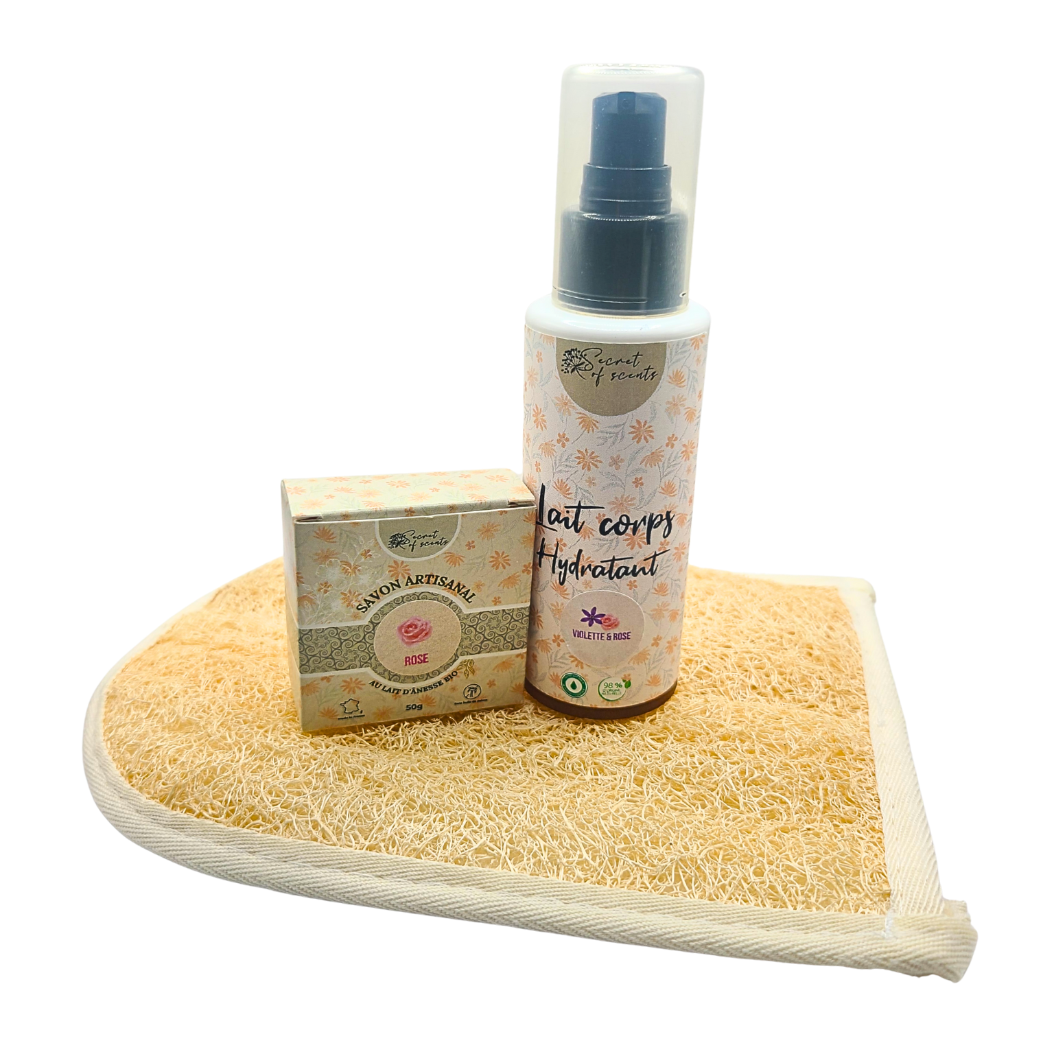 Offrez à votre peau une parenthèse de douceur avec notre pack Instant Douceur. Il associe un savon au lait d’ânesse apaisant, un gant exfoliant en loofah et un lait corporel hydratant.