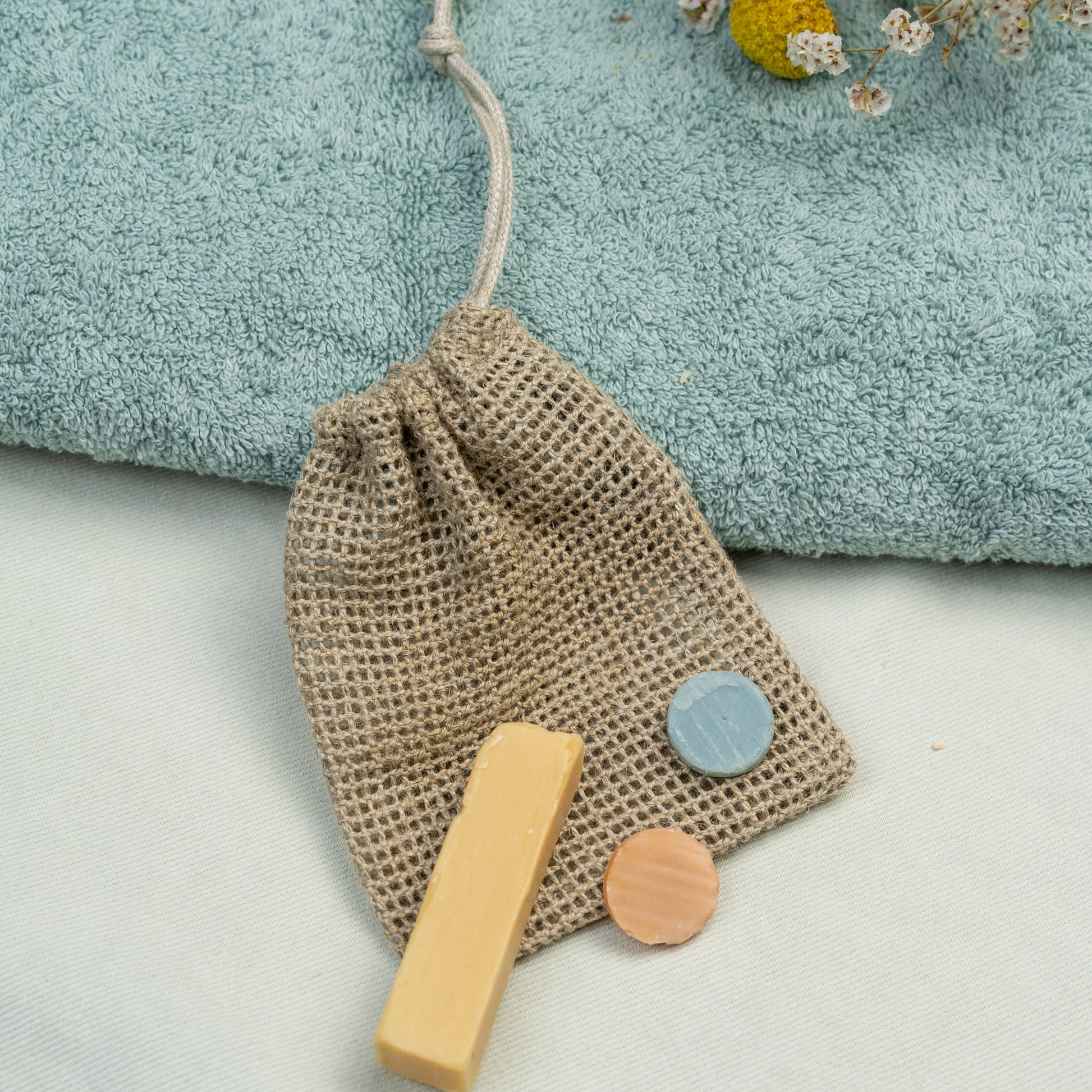 Fabriqué en textile résistant, ce petit filet permet de collecter et réutiliser les restes de savon solides, souvent jetés trop tôt.